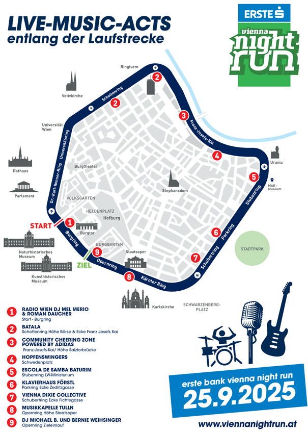 Die Wiener Ringstraße, eine laue Herbstnacht, tausende Läufer:innen mit demselben Ziel – was darf hierbei natürlich nicht fehlen? Musikalische Unterstützung entlang der Strecke!