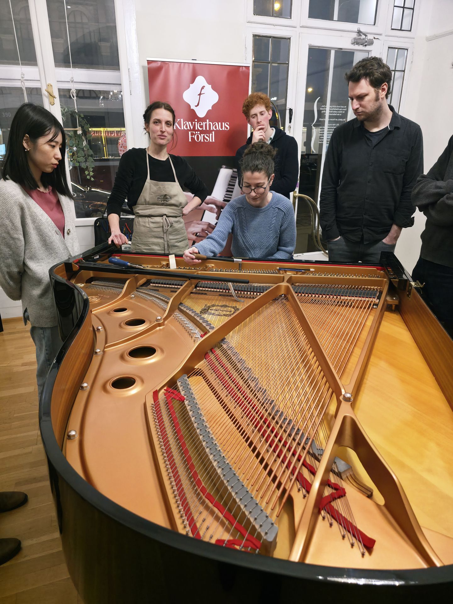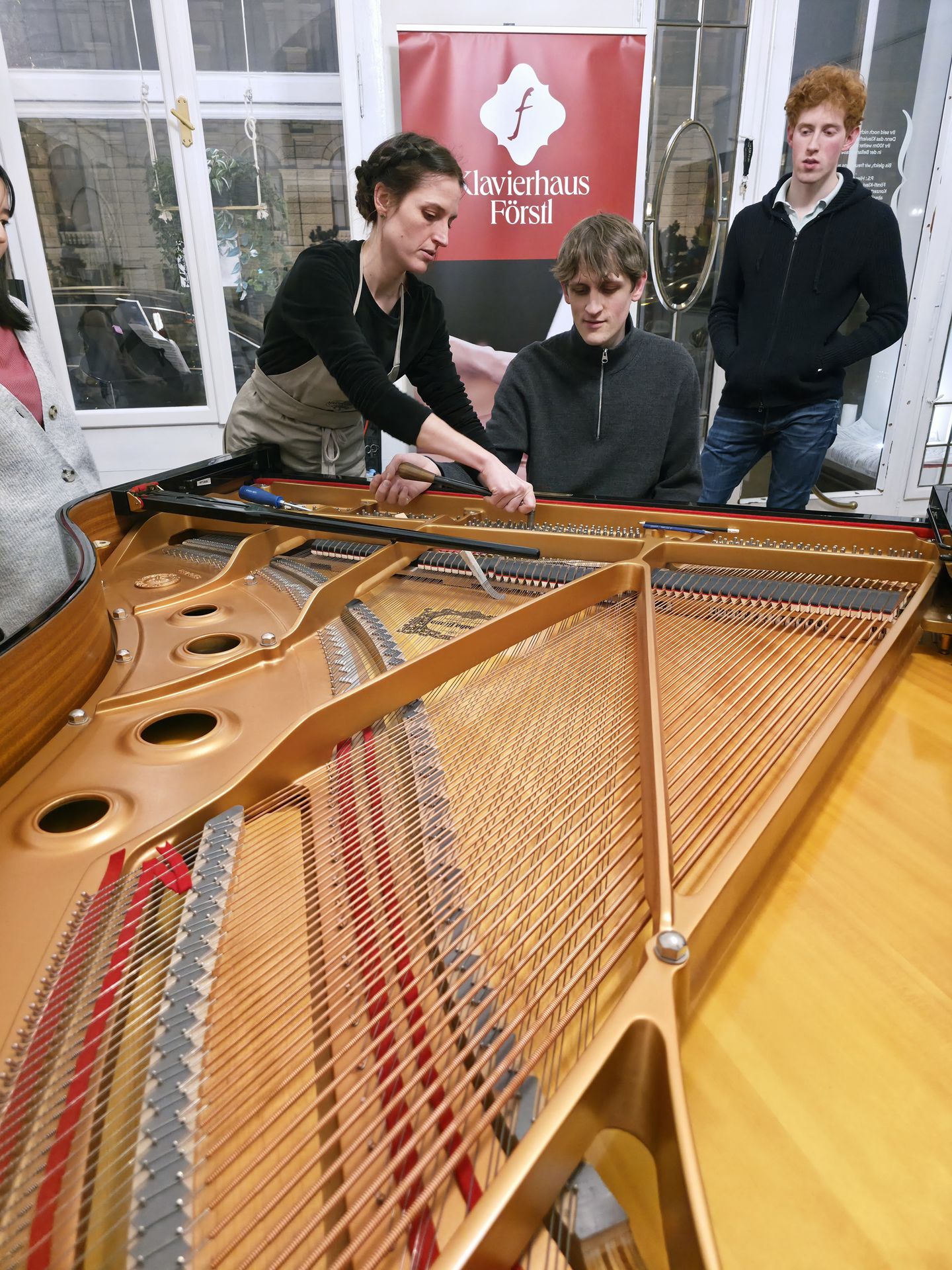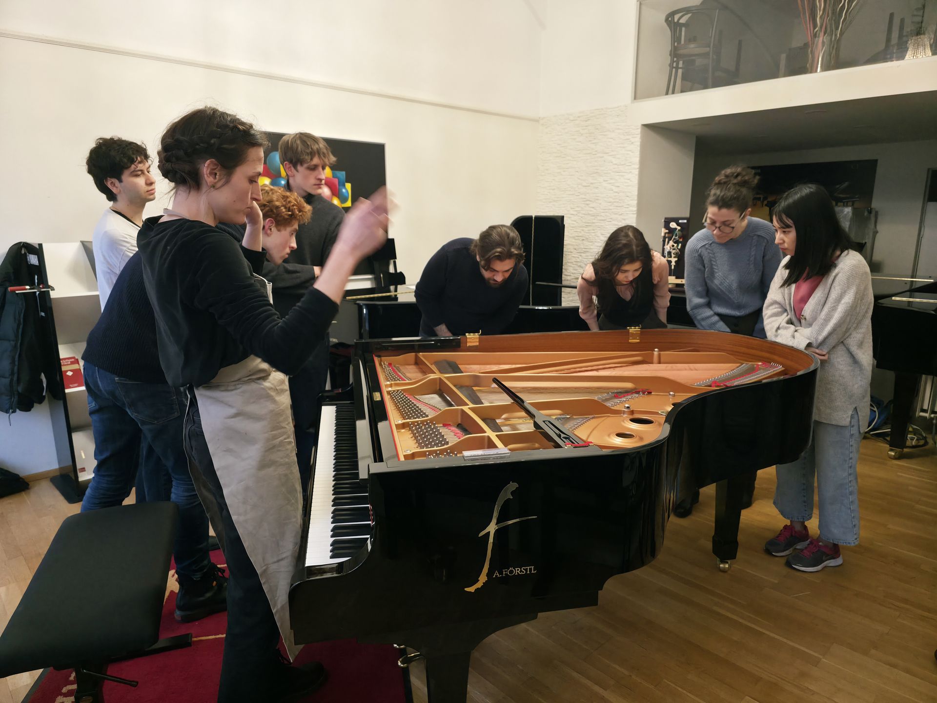 Die ersten interessierten Musikerinnen und Musiker haben beim P(i)anorama Workshop das Klavier von innen kennengelernt.