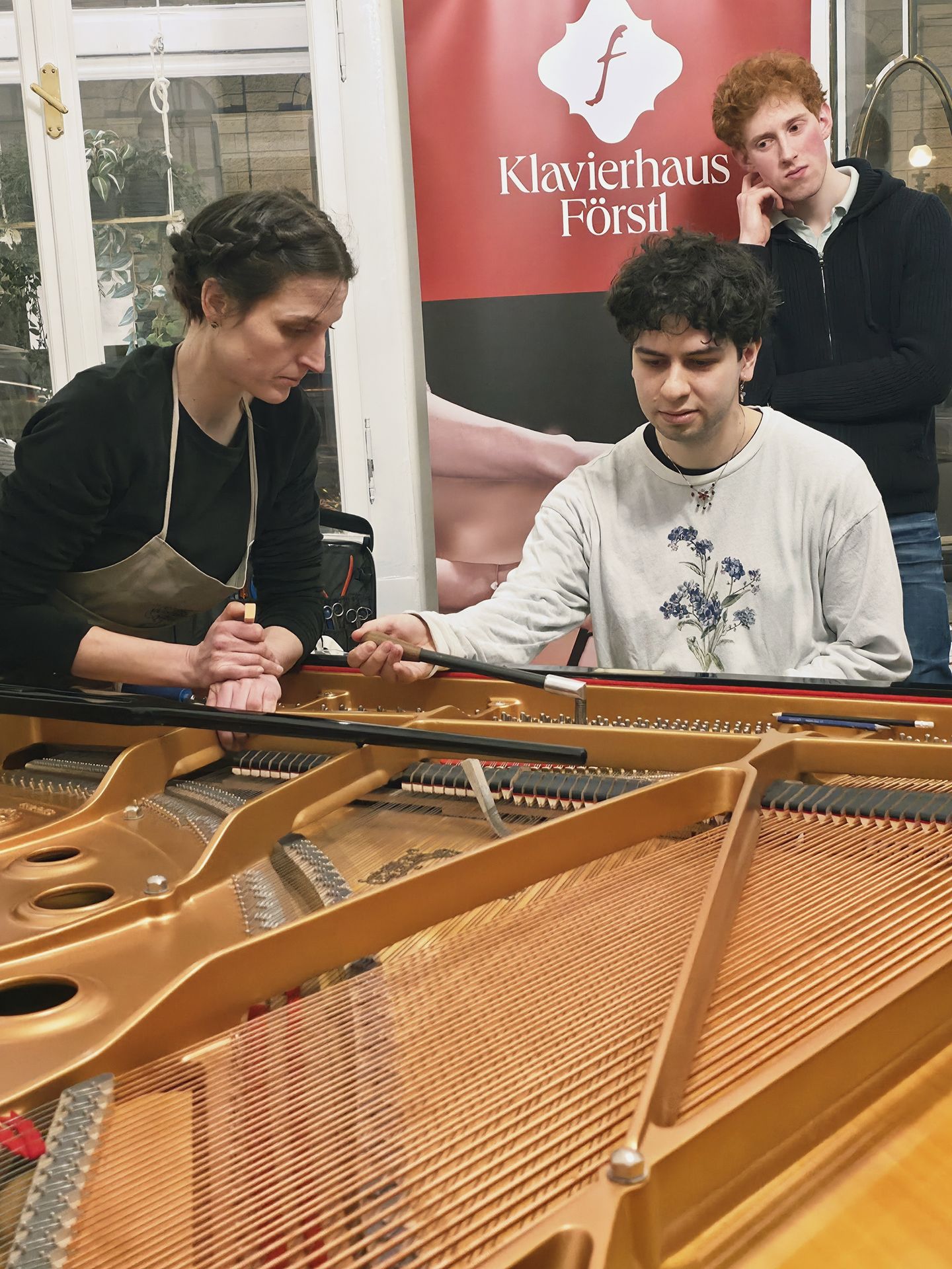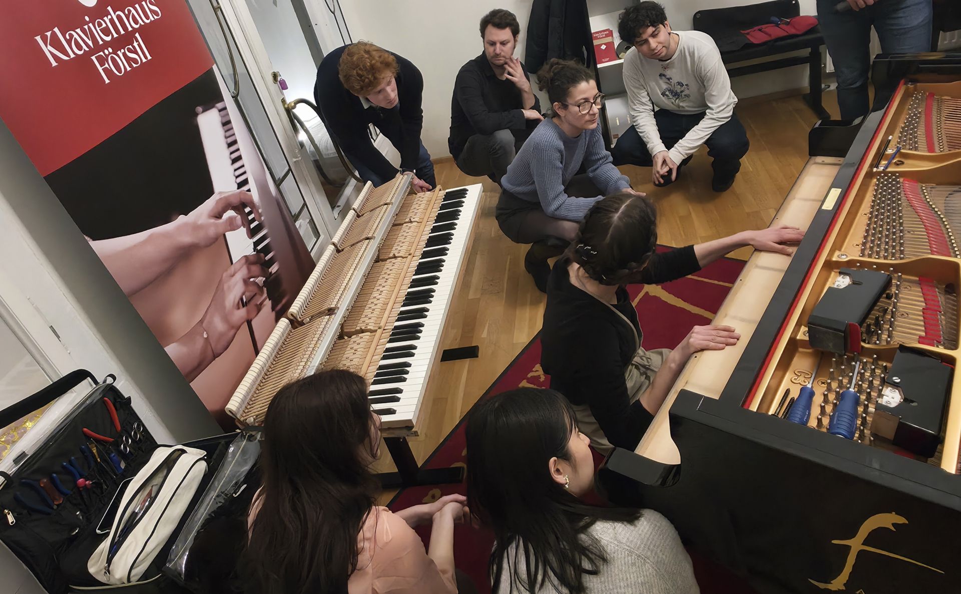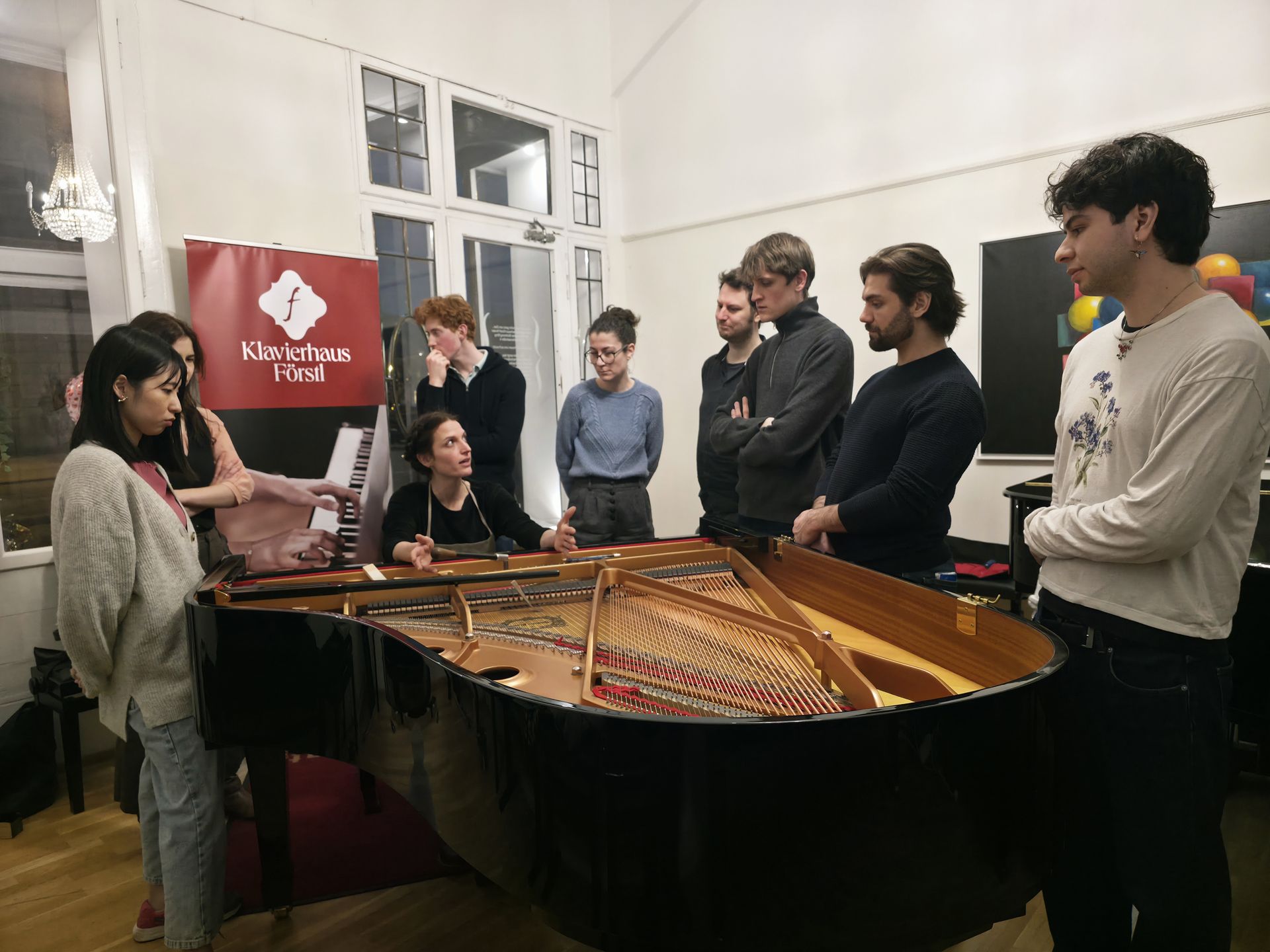Die ersten interessierten Musikerinnen und Musiker haben beim P(i)anorama Workshop das Klavier von innen kennengelernt.